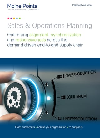 This Maine Pointe Perspectives paper is recommended reading for CEOs and PE executives who want to achieve Sales and Operations excellence in their supply chain and includes: